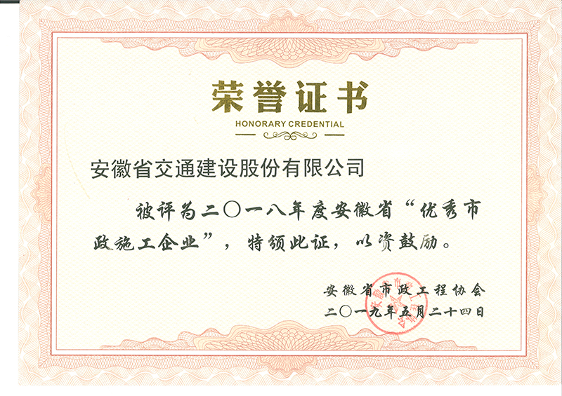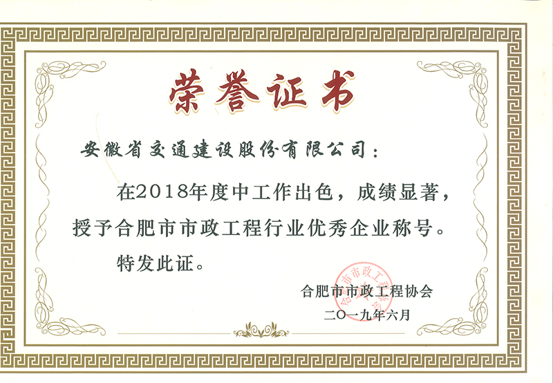 合肥市市政工程行业优秀企业称号